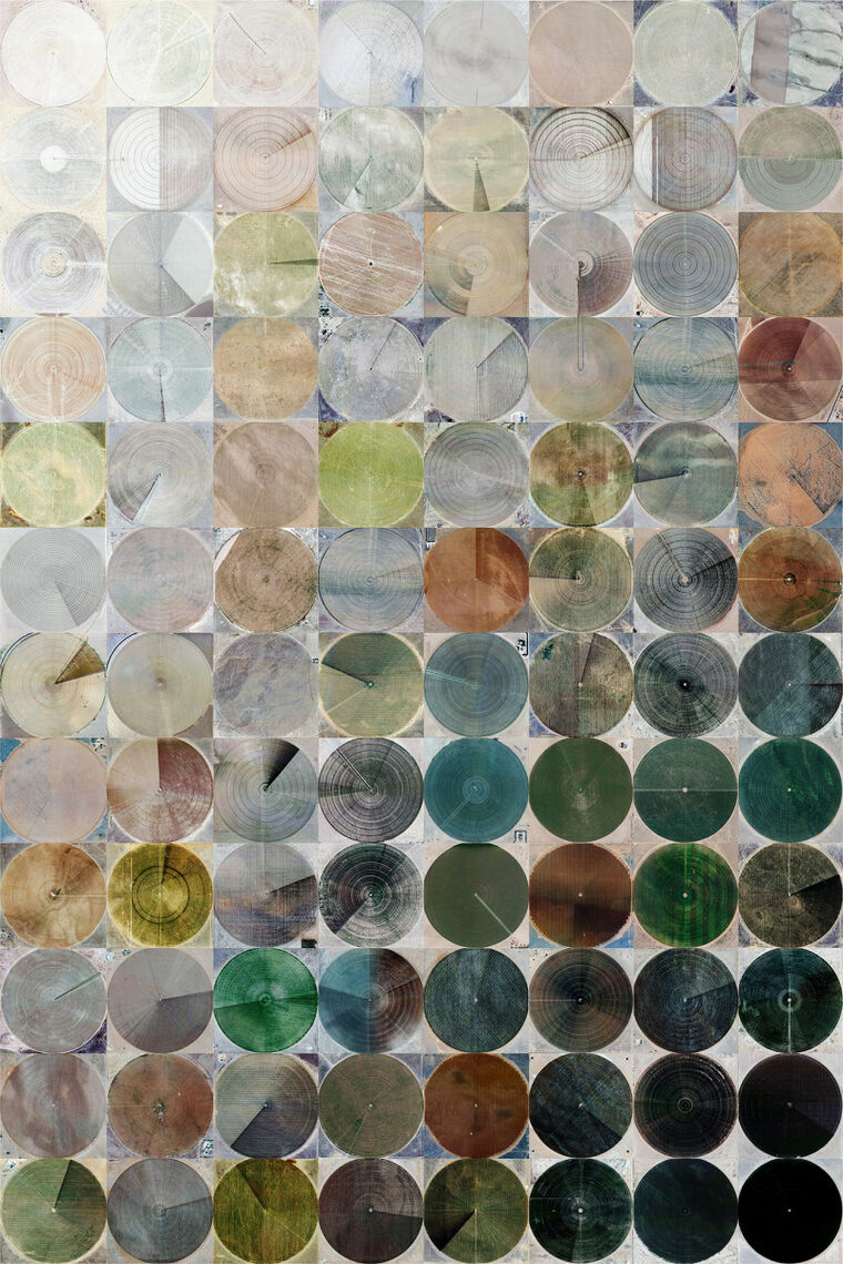 De Ruijter’s first experience of working with Google satellite images was the project Cropped (2012), for which he travelled to New Mexico to photograph circular crop fields with a kite. The fields were so large that they were impossible to capture because the kite was unable to gain enough height. Hence his decision to use Google as a source, resulting in a series of over 1000 screenshots of crop fields which were later combined into a stop-motion film. Interestingly, the images did not need to have a high resolution because all the details become indistinguishable when seen from such a distance.