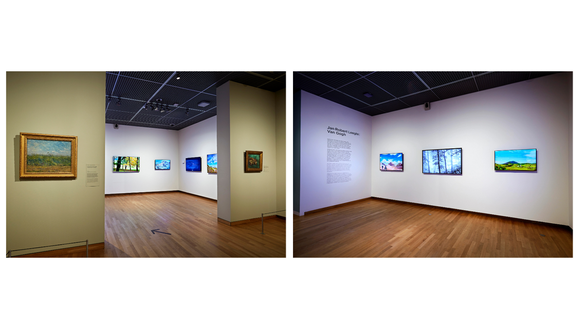 Voor de installatie van de kunstwerken is een stabiele internetverbinding gerealiseerd. De kunstenaar koos schermen van diverse formaten uit die in bepaalde posities en afmetingen naast elkaar zijn opgehangen. Met Bart Rutten, artistiek directeur van het Centraal Museum, heb ik de opstelling in het Van Gogh Museum bezocht. Jan Robert Leegte was er ook bij. Zo kon het Centraal Museum het eindresultaat bekijken en samen met de kunstenaar de technische realisatie bespreken. En genieten van de spannende combinatie met de schilderijen in het Van Gogh Museum. Een mooi en geslaagd project.