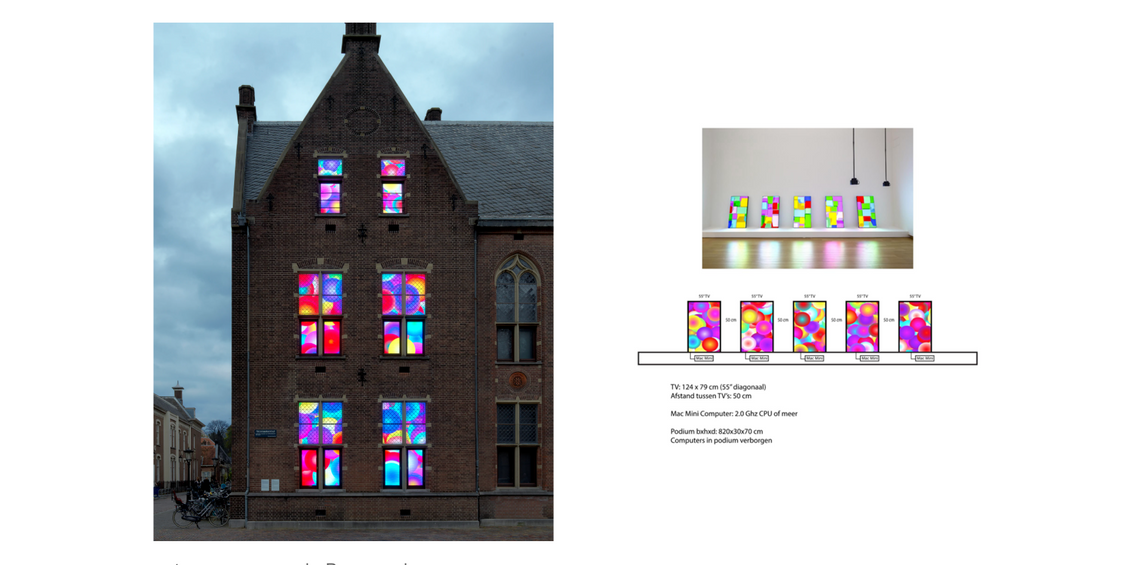 Voor de installatie van de kunstwerken is een stabiele internetverbinding gerealiseerd. De kunstenaar koos schermen van diverse formaten uit die in bepaalde posities en afmetingen naast elkaar zijn opgehangen. Met Bart Rutten, artistiek directeur van het Centraal Museum, heb ik de opstelling in het Van Gogh Museum bezocht. Jan Robert Leegte was er ook bij. Zo kon het Centraal Museum het eindresultaat bekijken en samen met de kunstenaar de technische realisatie bespreken. En genieten van de spannende combinatie met de schilderijen in het Van Gogh Museum. Een mooi en geslaagd project.